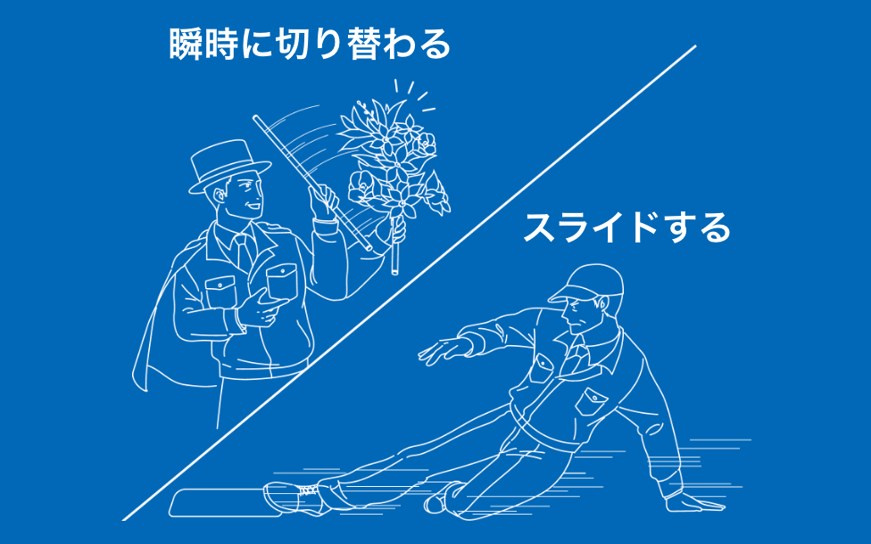 「瞬時に切り替わる」、「スライドする」2種類の機構でご要望にお応えします