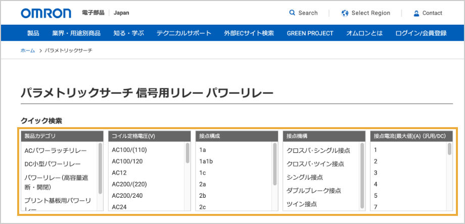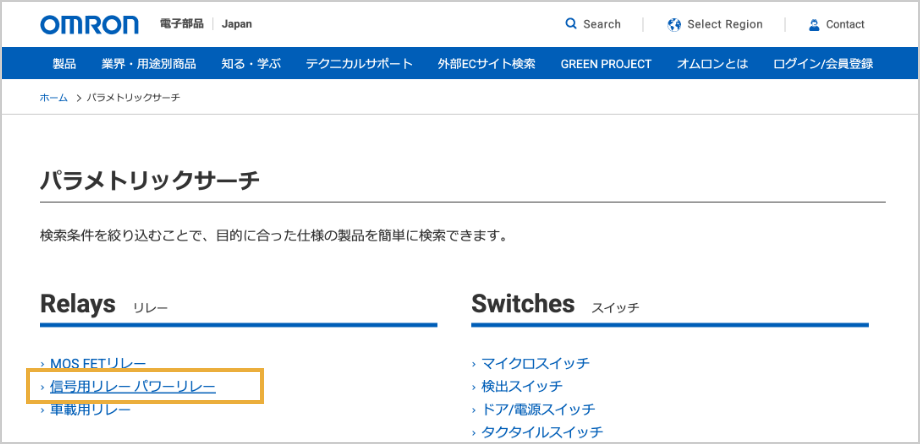 オムロンは、どなたでもお探しの商品をスムーズに探せる検索サービス「パラメトリックサーチ」で、部品選定をお手伝いいたします。