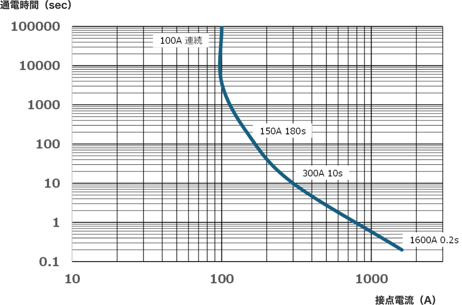 Max100Aの連続通電、緊急時の電流遮断(10回以下)を想定した仕様になっています。