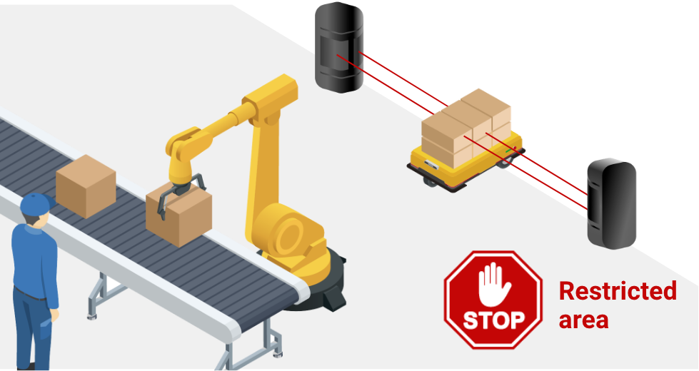 - Because the presence or absence of objects is detected by light reflection, there is a possibility of false detection of machines such as mobile robots. In addition, although it is possible to detect objects passing through, it is not possible to detect objects remaining in the danger area.