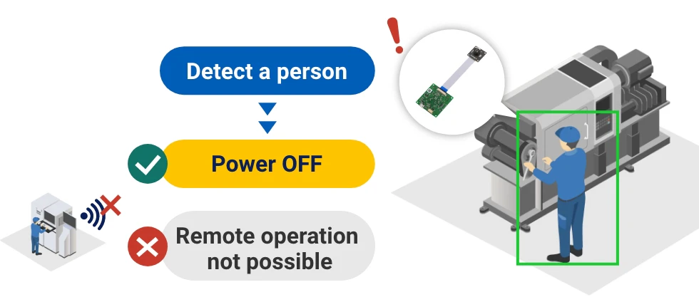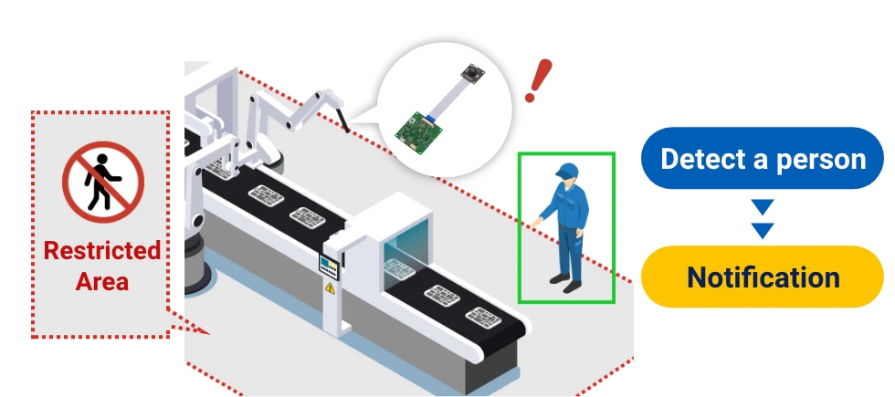 There are various risks and problems caused by human factors lurking in manufacturing sites. We offer solutions to manufacturing site issues with our easy-to-install sensors that integrate a camera and in-house developed algorithm to detect human bodies, faces, and objects.