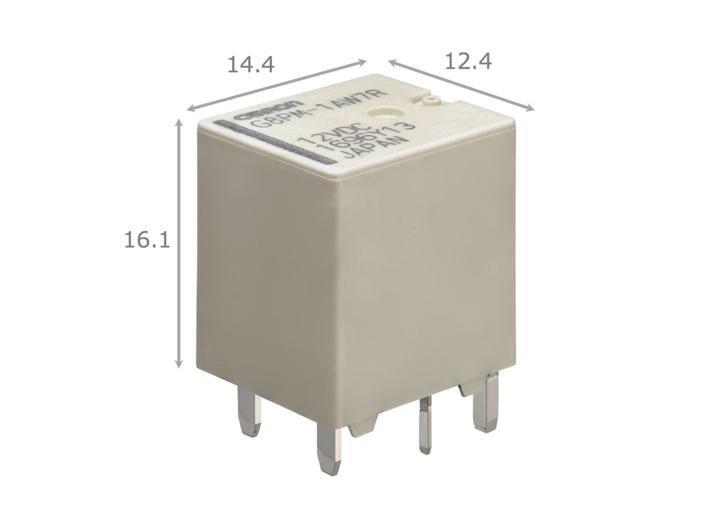 DCリレーは低容量領域の用途(モータ、ファン、ヒータの制御など)にも使われます。これらの用途は限られたスペースの中におけるシビアな設計が求められるため、リレーにおいては高い開閉能力を有しながらも徹底的な小型化(専有体積・面積の極小化)が求められることが特長です。