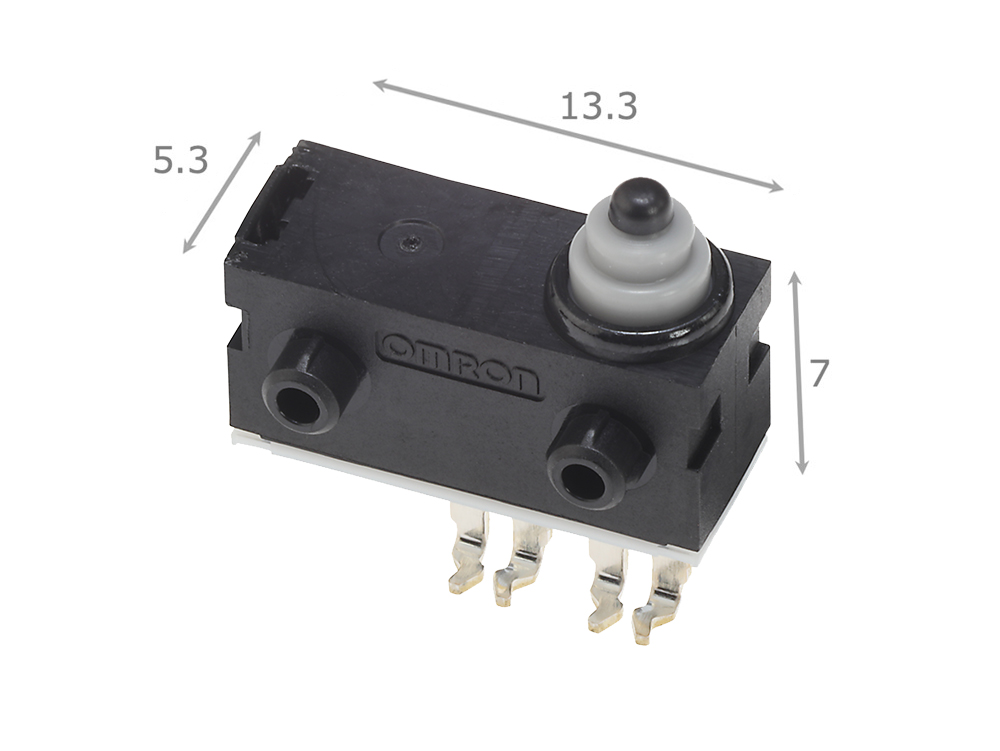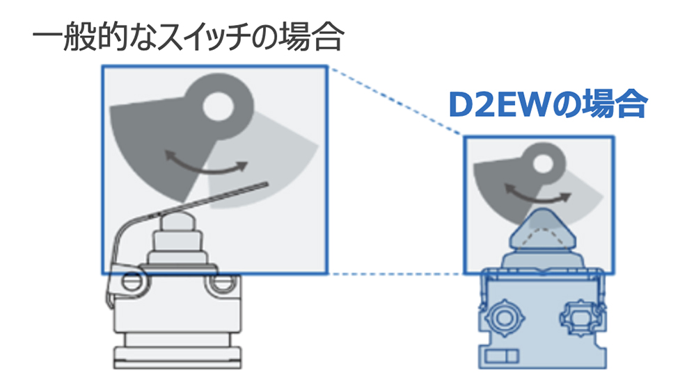 上左右からの操作に対応した小型マイクロスイッチで、検出機構を最小化。