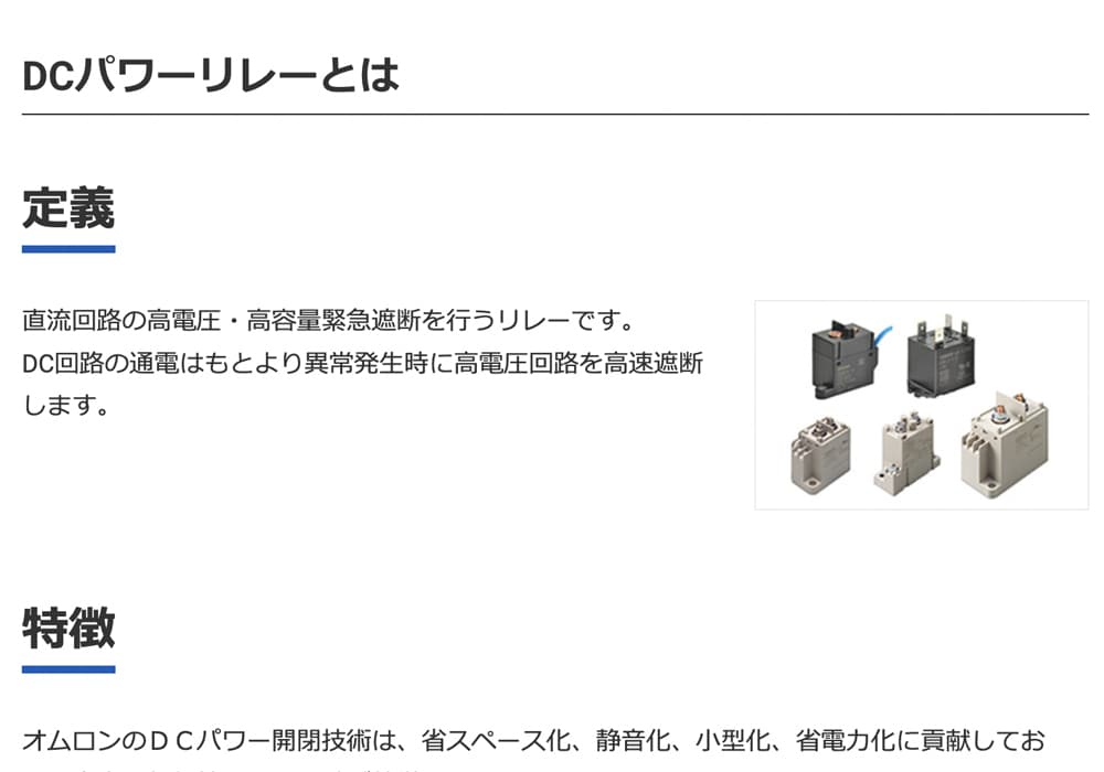 「安定通電・遮断」「低消費電力」「小型化」のニーズに応えるオムロンの推奨商品を、DCリレー(高容量)、DCリレー(低容量)、マイクロスイッチに分けて紹介します。