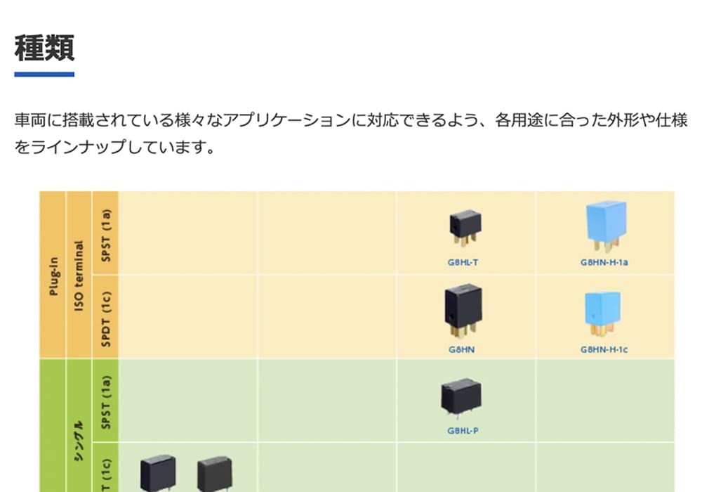 注. 車載用途にご検討の方は、車載用リレーのWEBページをご参照ください。