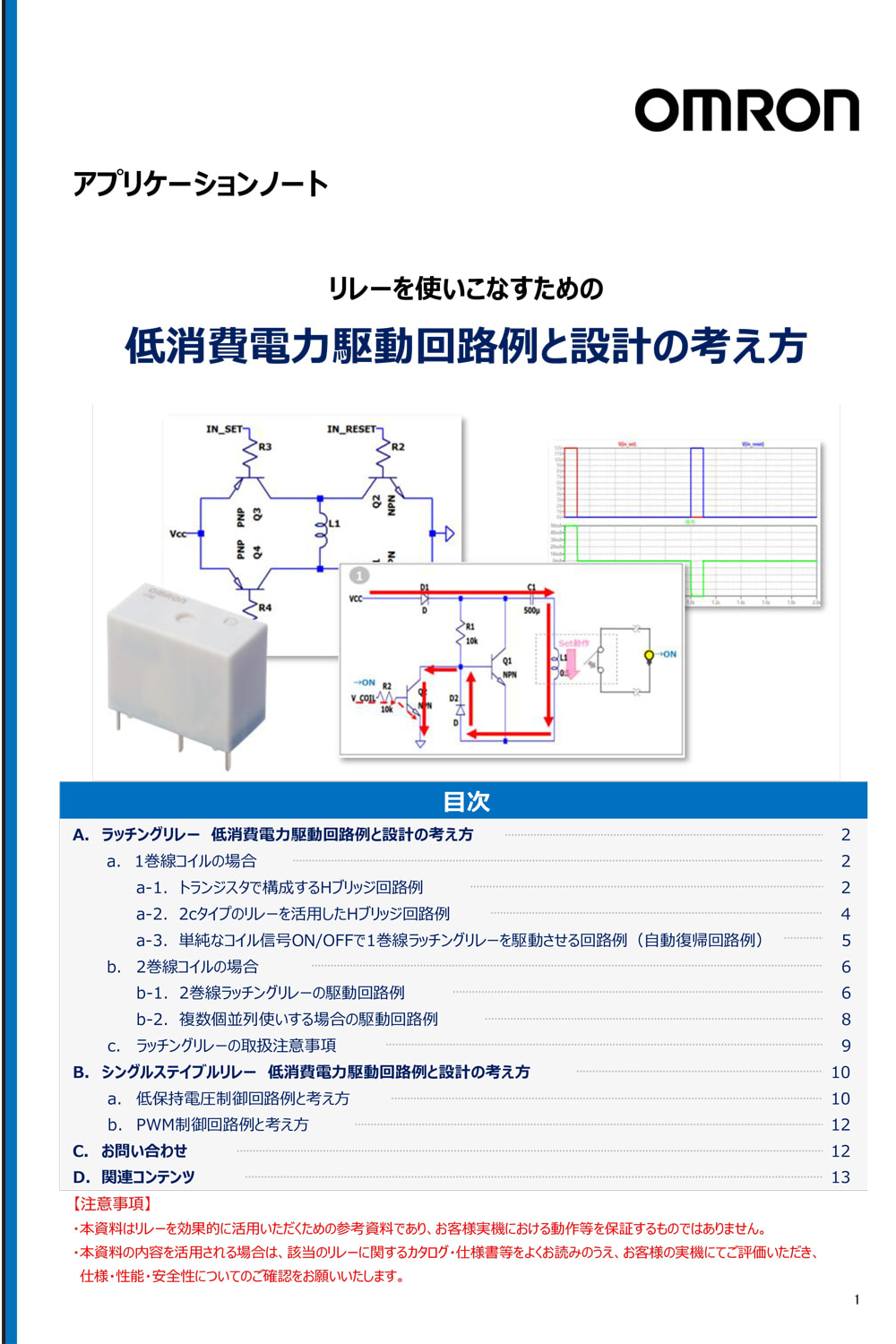 本ページでは、機器の低消費電力化に貢献する小型ラッチングリレー/シングルステイブルリレーG5Q-HRの紹介と、リレーを効果的に活用するための低消費電力駆動回路(ドライブ回路)例を紹介します。