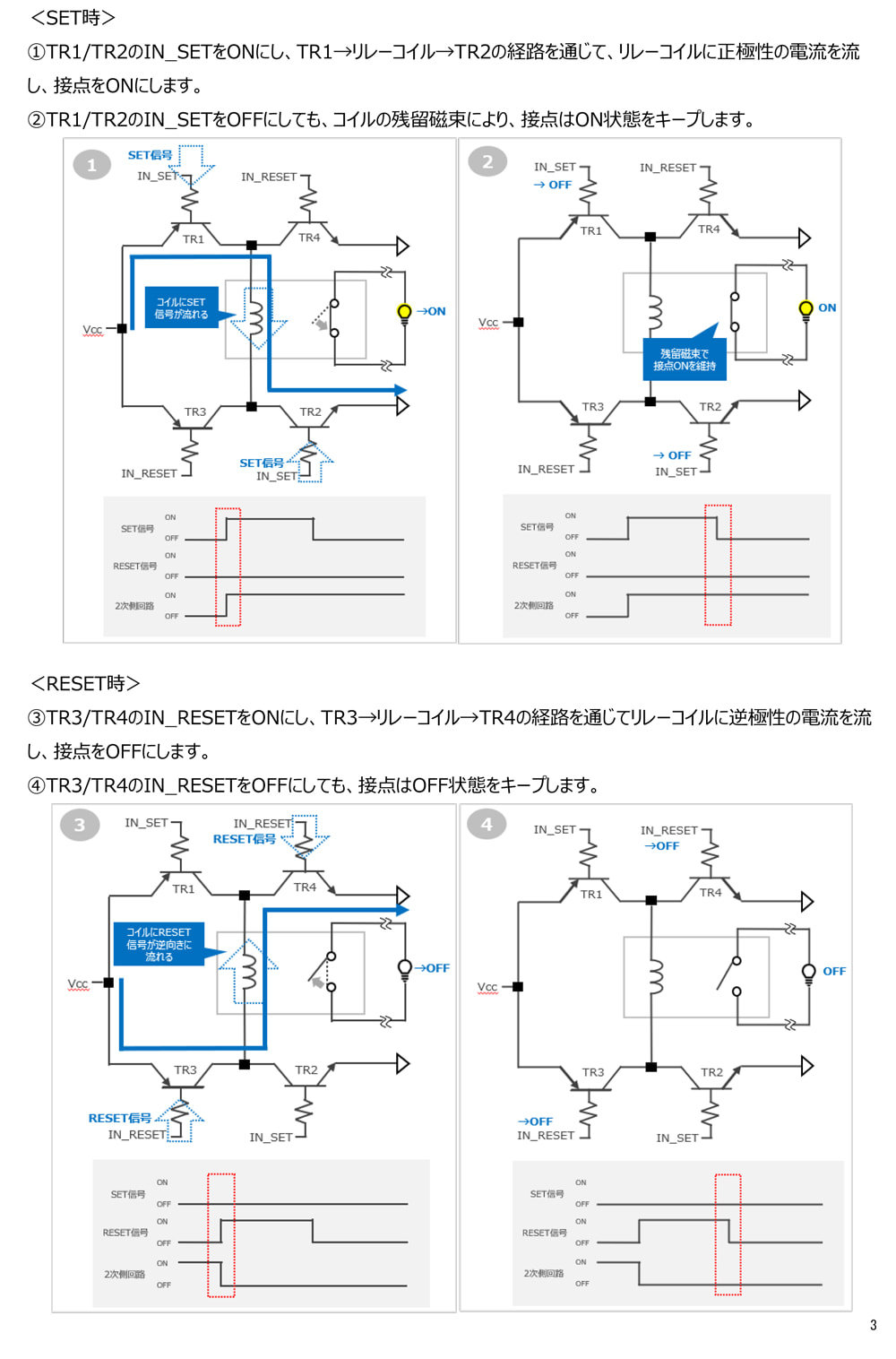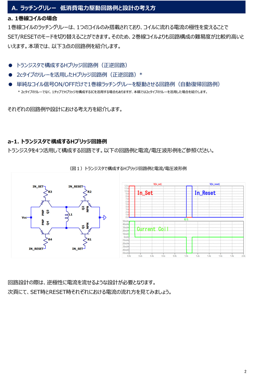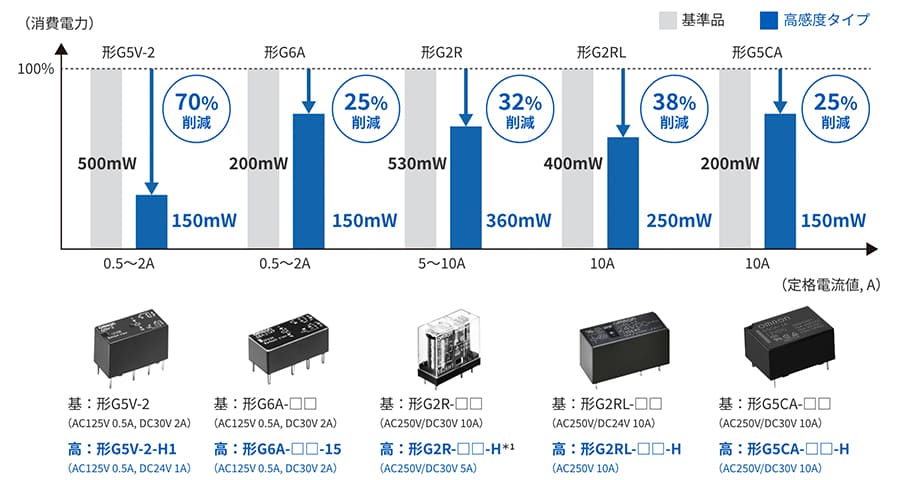 用途に応じたリレーの選択、低消費電力駆動回路設計