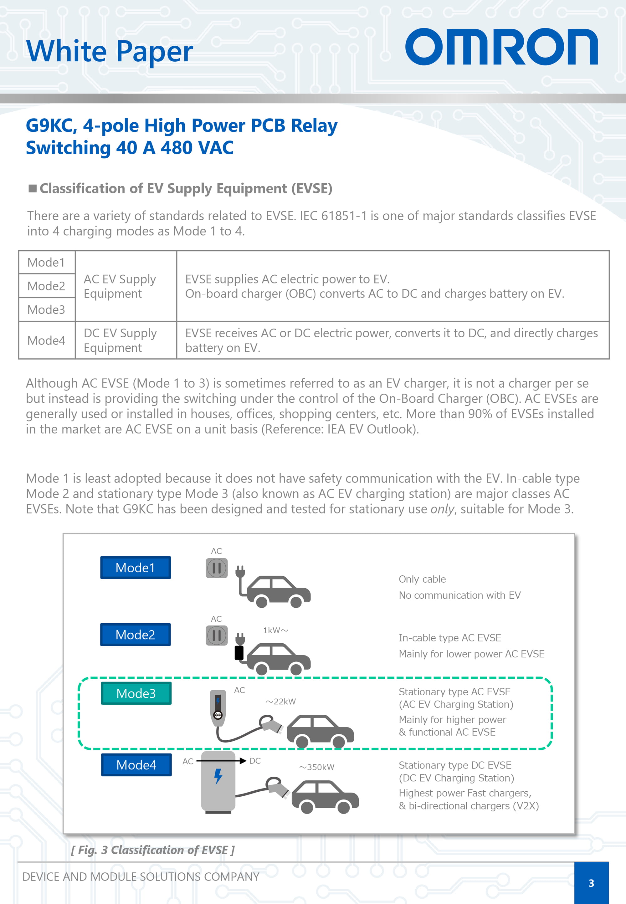 OMRON's relays: Low contact resistance & low heat generation => Value provided to EV chargers: (Suppresses temperature rise inside the housing and extends the life of equipment、Increases the output of equipment to reduce charging time、Makes equipment smaller and lighter、Saves labor by automating production) Compliant with EV charging related standard IEC6295
