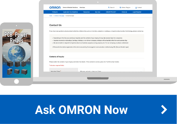 OMRON relays are used in a wide variety of products by our customers, and there are a wide range of design considerations, such as counter electromotive voltage of coils, holding voltage, and the effects of magnetic fields when DC relays are used. To help you use OMRON relays more comfortably and easily, this page provides easy-to-understand explanations of the most frequently asked questions from our customers.