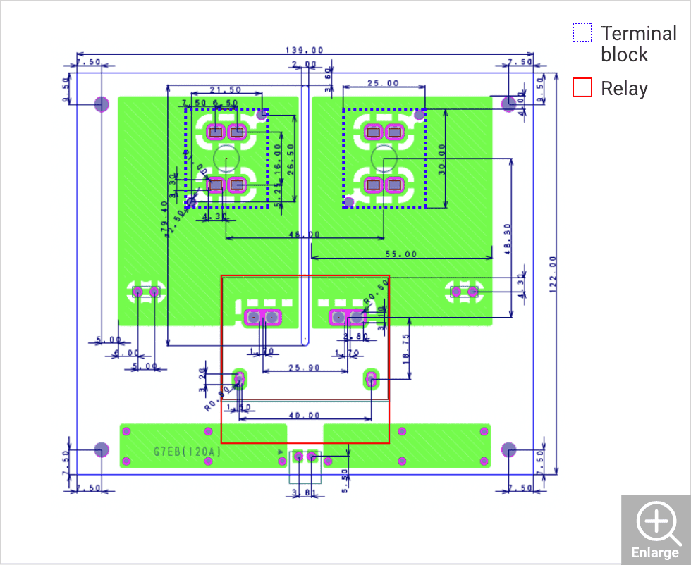 When controlling a large current on PCBs, suppressing the heat is key for successful process. Therefore, the designs of circuit PCBs around the relay are important.